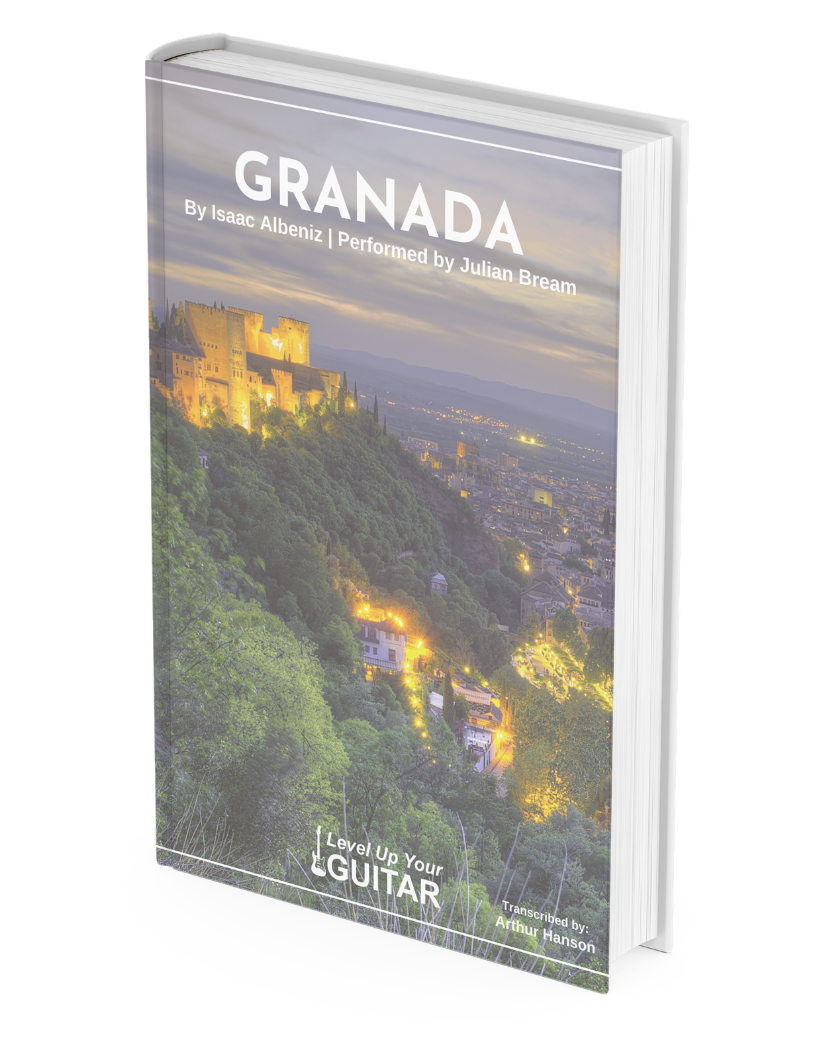 This is a standard notation (and separate TAB) transcription of Granada from Suite Española by Isaac Albeniz as performed by Julian Bream.